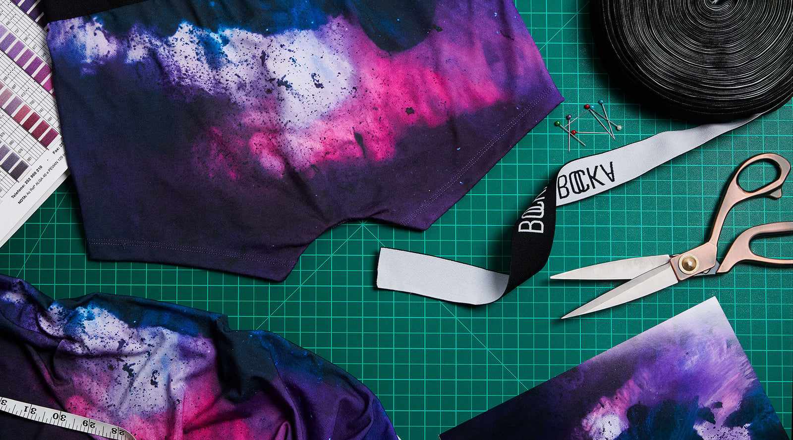 The Supernova Collectionuses a super-soft polyester blend (90% polyester/10% elastane) because printing on polyester produces more vivid colours than printing on cotton or modal.